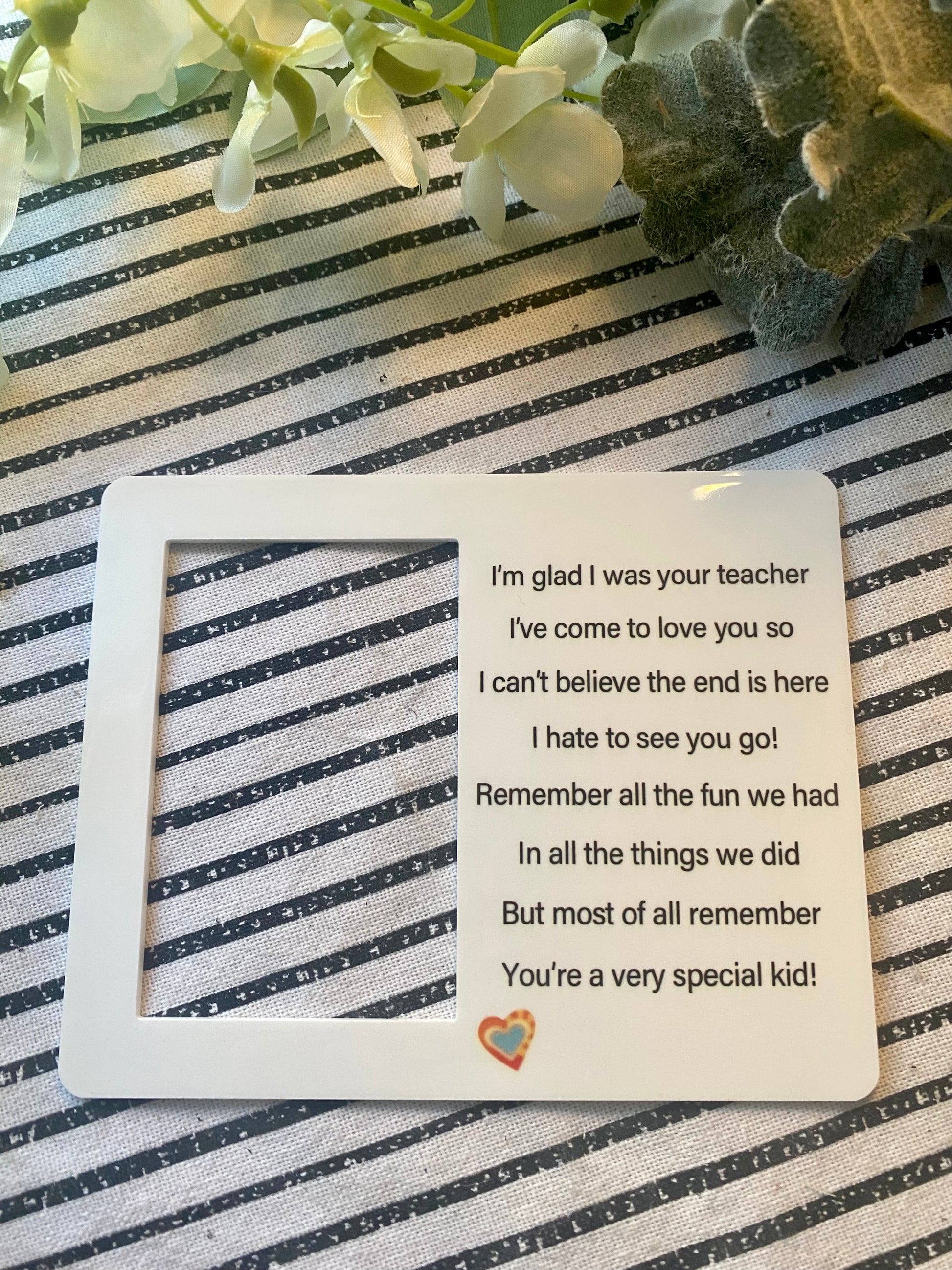 Cute little frame for you to give to your students at the end of the year! Simply print a picture of you with you student and place in the frame. You can even write a message on them with a sharpie. Also add a magnet for them to hang on their fridge:)❤️❤️